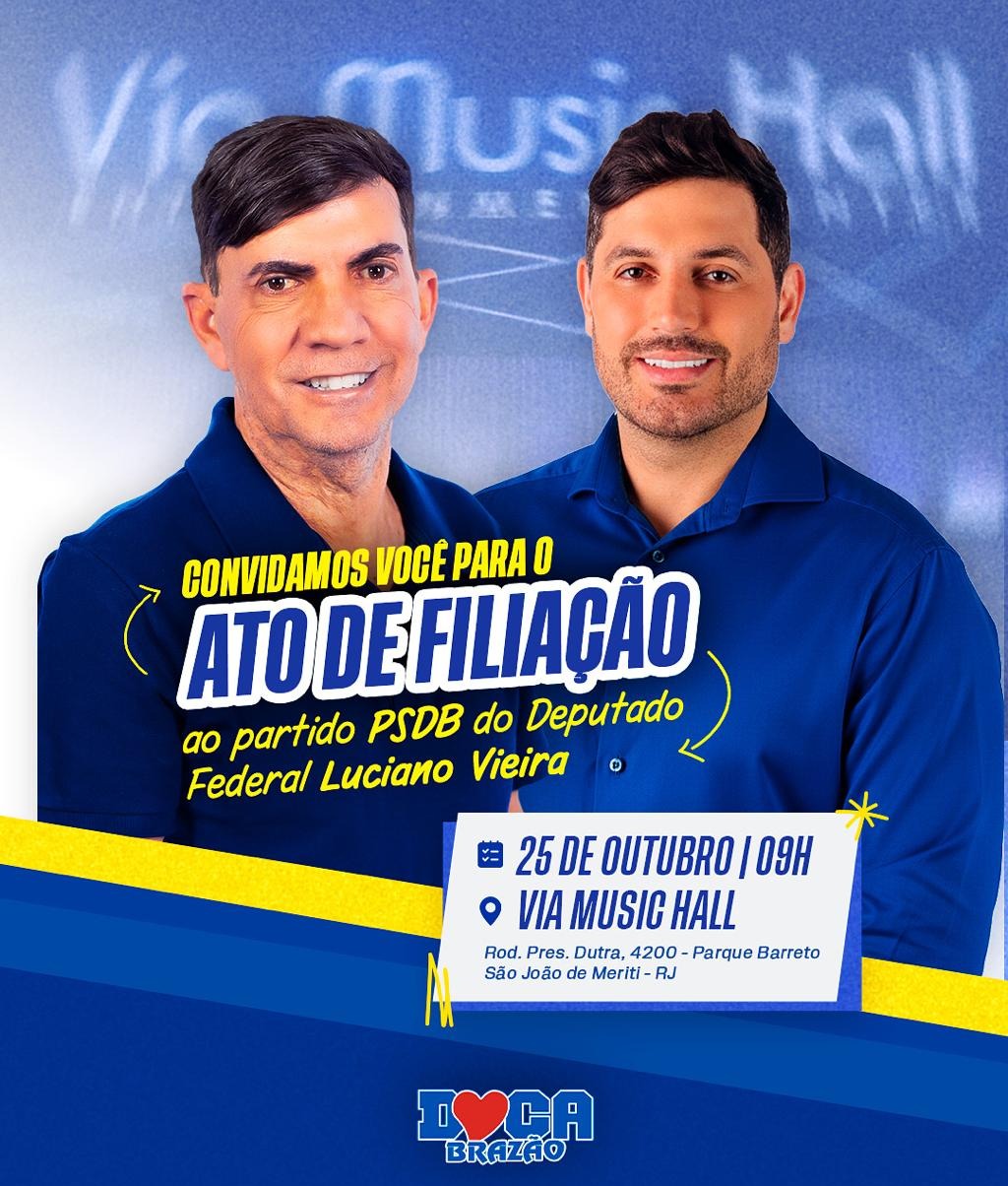 O deputado federal Luciano Vieira já carimbou sua saída do Partido Republicanos. A nova casa partidária de Luciano Vieira e a presidência estadual do PSDB. O evento está marcado para amanhã (25), às 9h, no Via Music Hall, que fica às margens da Rodovia Presidente Dutra, em São João de Meriti, cidade onde seu irmão Léo Vieira é prefeito.