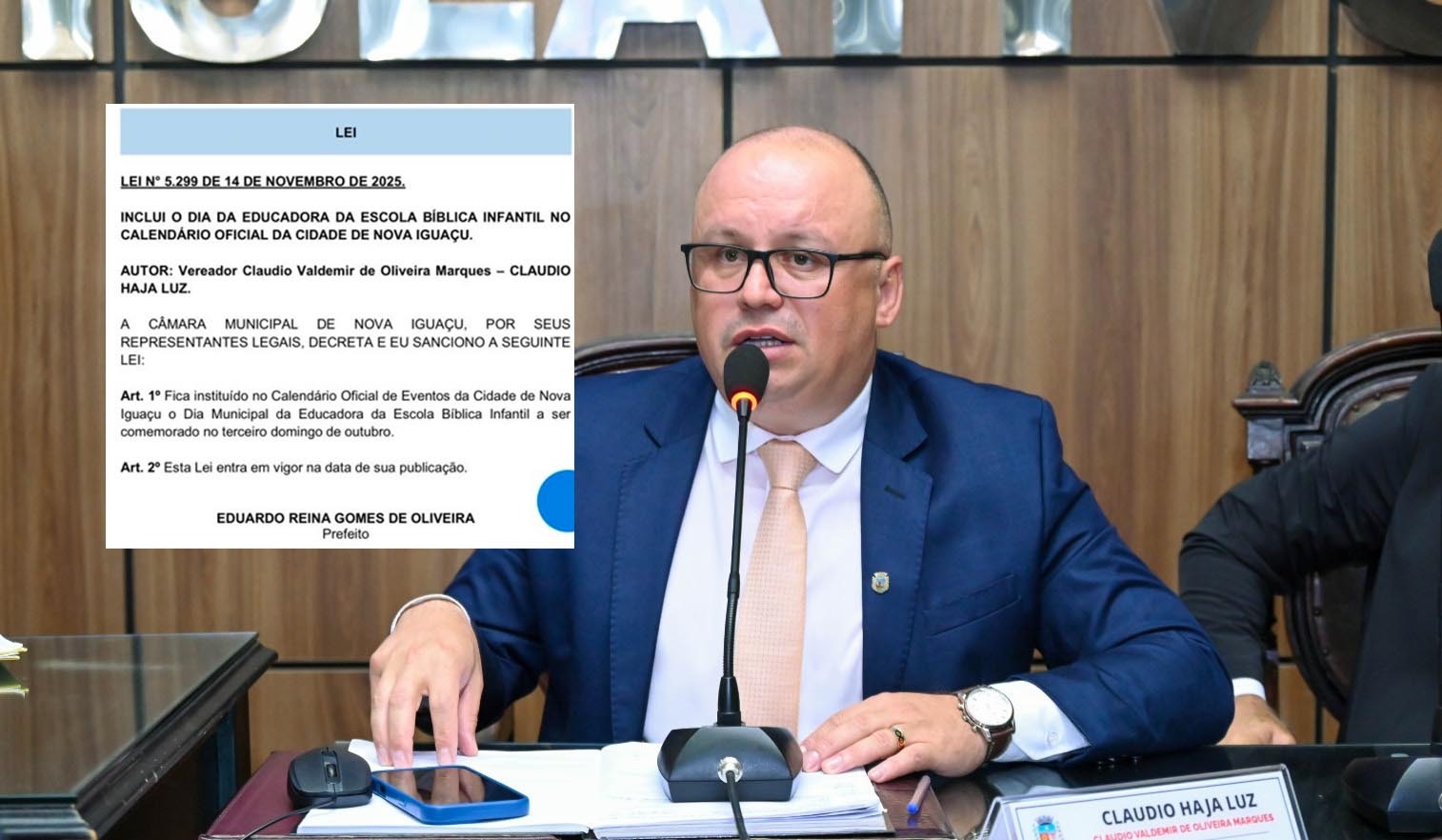 O prefeito de Nova Iguaçu, Dudu Reina (PP), sancionou a proposta do vereador Claudio Haja Luz (Republicanos) de incluir o Dia da Educadora da Escola Bíblica Infantil no calendário municipal, de acordo com publicação no diário oficial. O terceiro domingo de outubro será sempre a data comemorativa. A equipe do vereador celebrou a sanção do prefeito como um grande triunfo, que valoriza o ensino bíblico para crianças na cidade.
