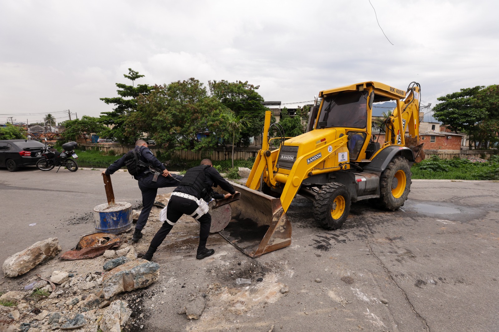 A Operação Barricada Zero conta com retroescavadeiras, rompedores, basculantes, caminhões de concreto, maçaricos, motosserras e equipes técnicas.